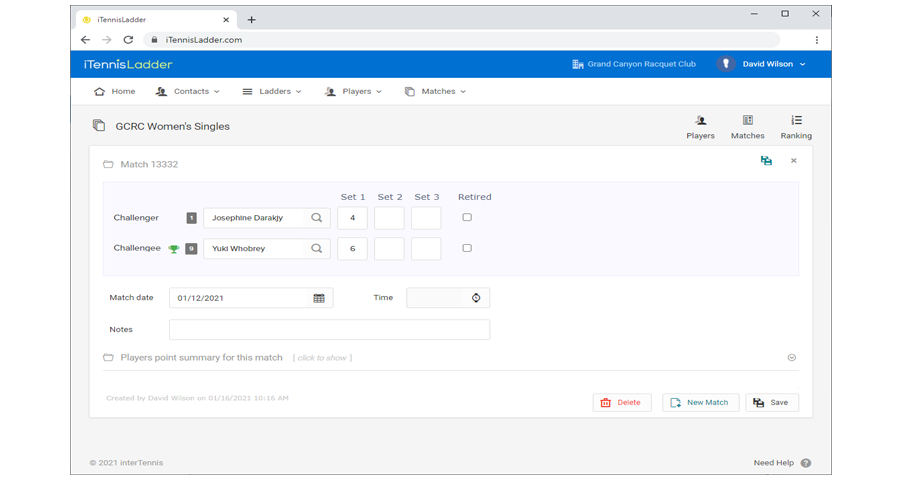 Once you setup an iTennis ladder, it is self-running. Players challenge each other, submit own match scores and view effect on ranking in real-time.