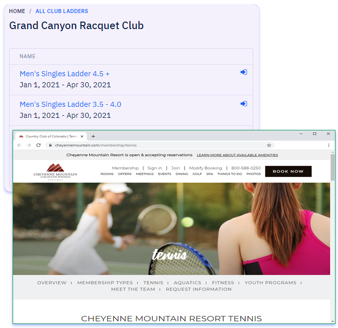 Players have access to a customized dashboard with their challenges and matches. They have the option to join other ladders, request matches, submit scores...